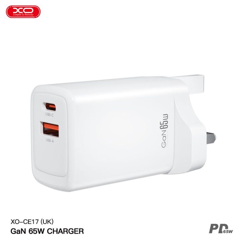 CE17 (UK) 65W gallium nitride fast charging charger (1USB-C 65W/1USB-A18W)