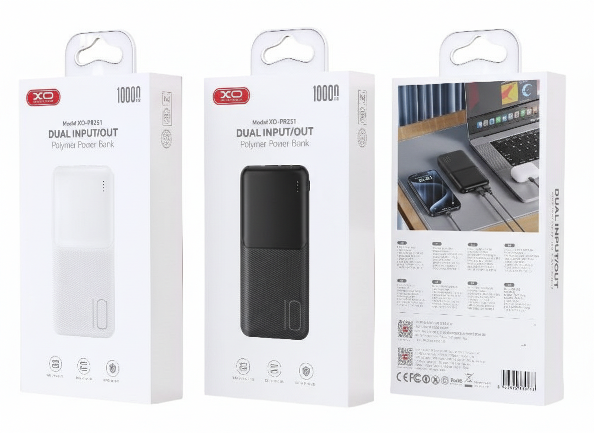 Stay powered up wherever you go with the XO PR251 10000mAh Portable Power Bank. This sleek, high-capacity charger ensures your devices stay connected and ready, whether you’re traveling, commuting, or managing a busy day. Engineered for maximum reliability, it features dual input (USB-C and Micro USB) and dual output (two USB-A ports), so you can charge multiple devices simultaneously and flexibly recharge the unit itself. Advanced Lithium Polymer battery technology delivers a safer, thinner, and more portable experience.